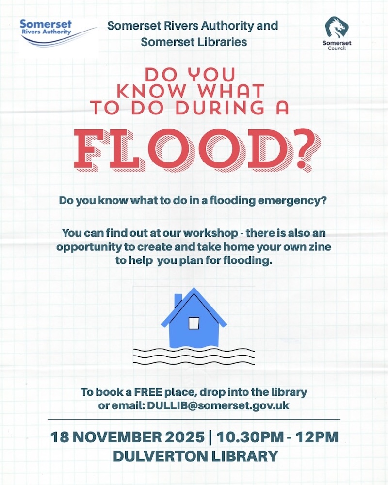 Two events are being held on Tuesday 18 November, in Dulverton and Porlock libraries, both centred on the question: ‘Do you know what to do during a flood?’