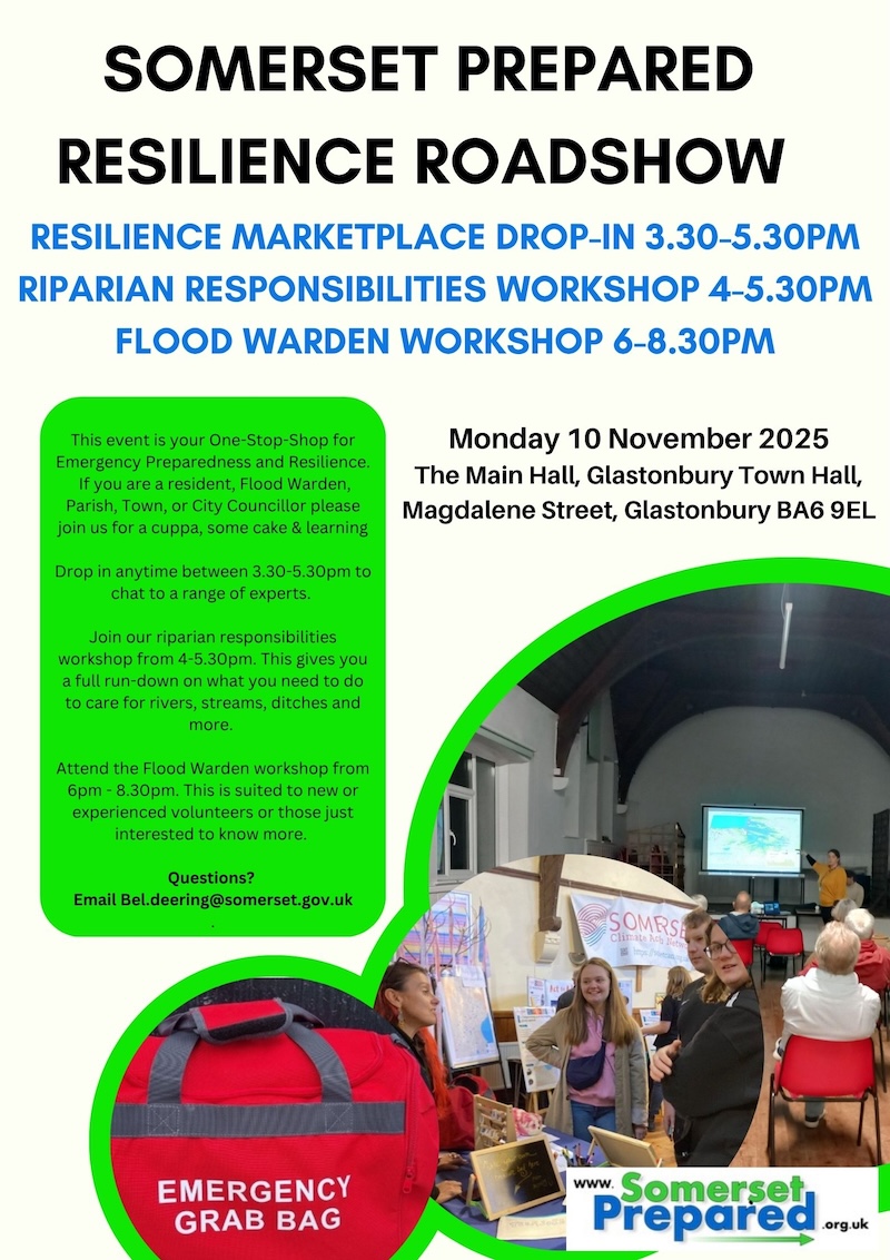 This event in Glastonbury Town Hall on Monday 10 November is about preparing for emergencies. Being ready.