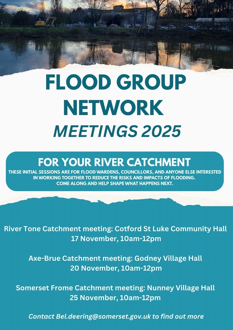 Four ‘drop-in’ events are being held for Somerset people interested in flooding and in working together to try to get more useful things done in different Somerset river catchments.