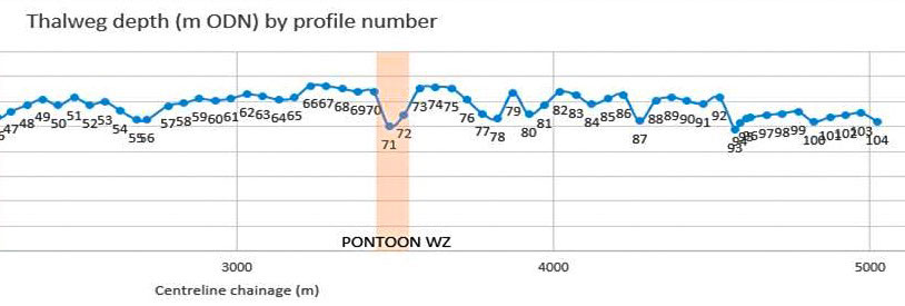 Design co-ordinates are loaded onto the Borr’s computers – then as dredging is done, they are updated in near real-time. As the vessel passes through a section of river, it re-measures it. On board, in the cabin, screens show the relative positions of riverbed and injection bar. This means it is possible to see what effect work is having, and to raise and lower the bar, and vary the pressure and volume of water, according to what is being achieved – and to what the SRA wants to achieve.